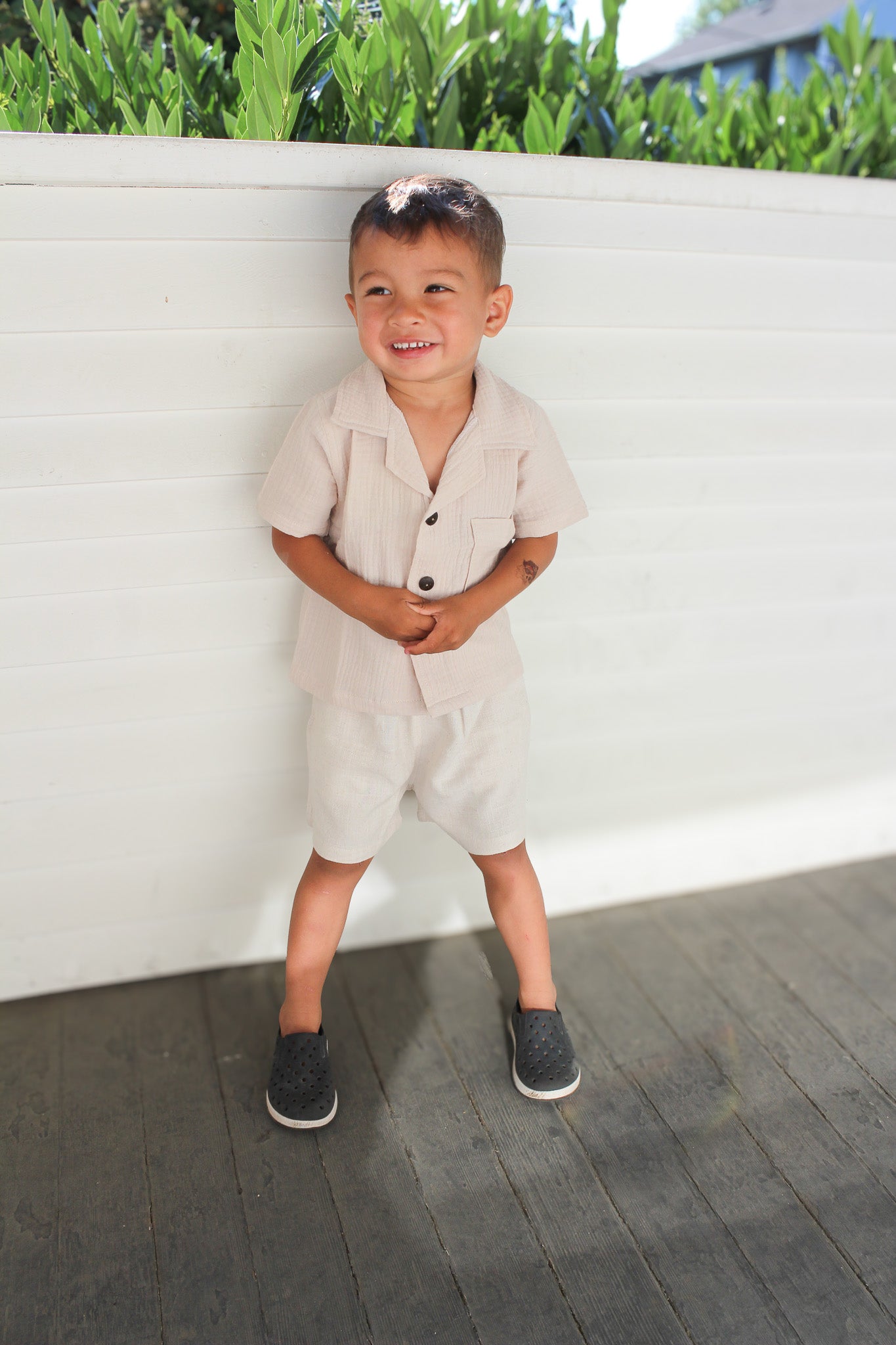Elastic waist shorts. Pair it with Clay button up shirt.